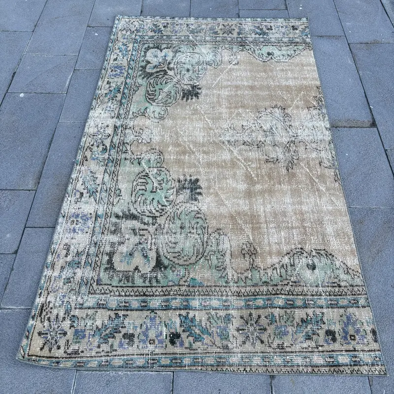 Brown, Green Floral Rug, 3.8x6.6 ft Chic Decor