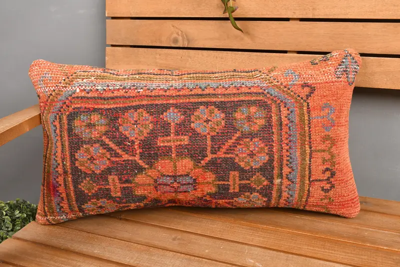 Red & Purple Floral Linen Throw Pillow, 12x24 Embroidered Cushion