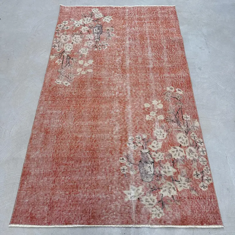 Red & Beige Rug, 3,5x6,1 ft Botanical Design