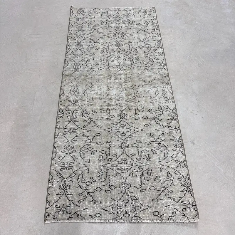 Green Geometric Rug, 2.6x6.1 ft with Floral Motifs