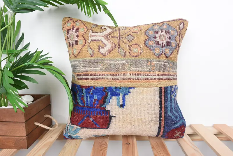 Orange & Bronze Patchwork Throw Pillow, 16x16 Embroidered Cushion