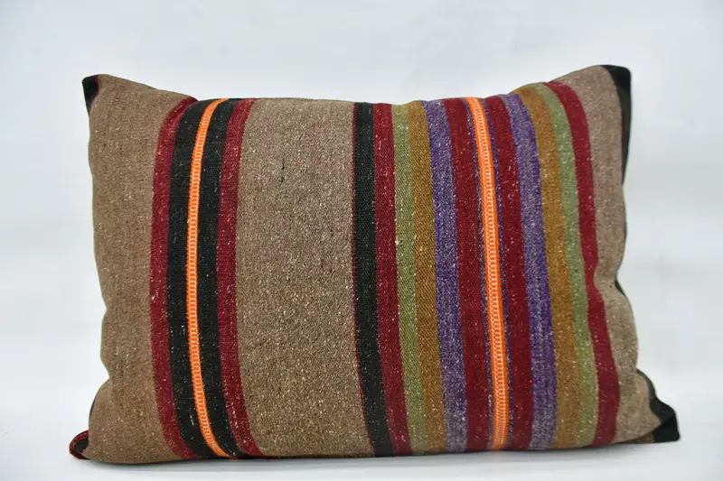 Brown & Orange Striped Cushion Case, 20x28 Embroidered Throw Pillow