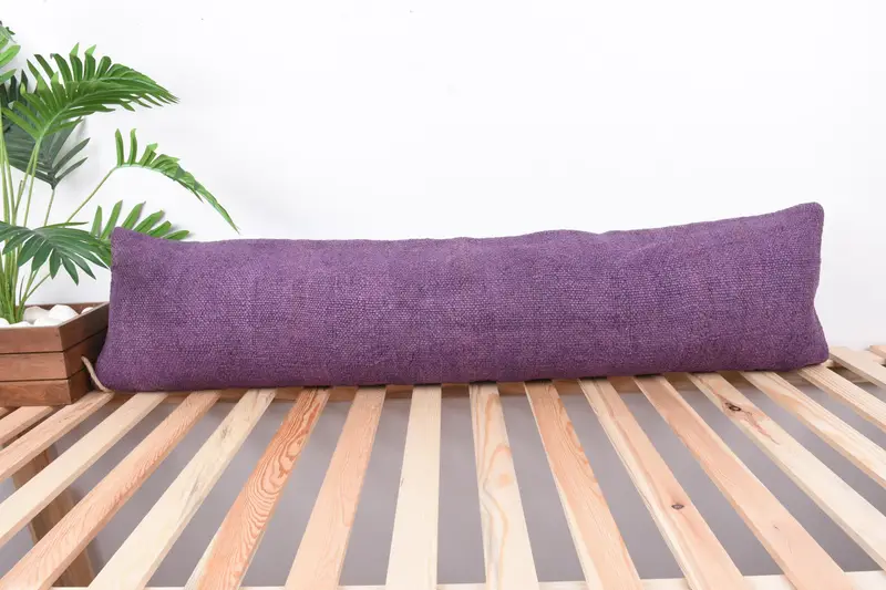 Handcrafted 12x48 Purple Southwestern Throw Pillow, Embroidered Vintage Cushion
