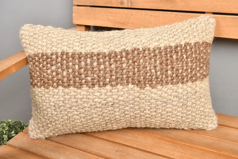 Beige & Brown Striped Pillow, 12x20 Embroidered Throw Pillow