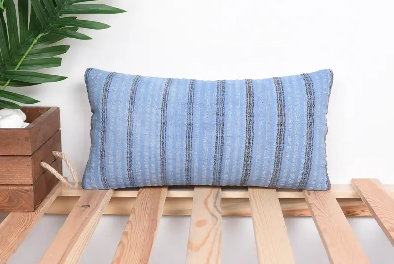 Blue & Brown Striped Pillow, Embroidered Vintage Throw Pillow