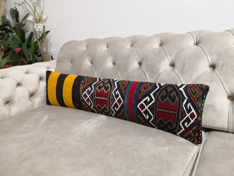 Red & Bronze Geometric Wool Throw Pillow, Vintage Rectangle Pillow