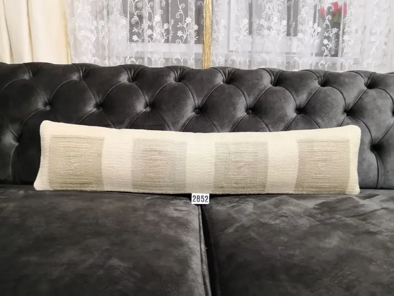 Handmade 8x36 Inch Geometric Wool Throw Pillow, Vintage Rectangle Pillow