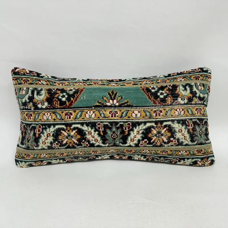 Black & Green Patchwork Throw Pillow, 12x24 Embroidered Cushion