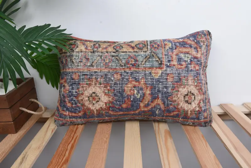 Blue Southwestern Embroidered Throw Pillow, Handmade Vintage Cushion