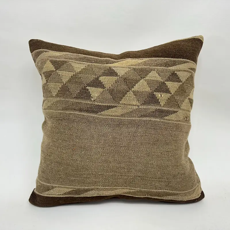 Brown & Beige Patchwork Throw Pillow, Handmade Embroidered Vintage Pillow
