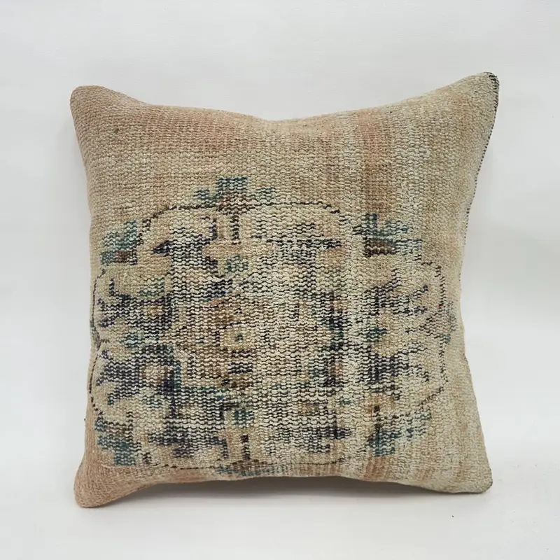 Beige Southwestern Embroidered Throw Pillow, Vintage Zippered Cushion