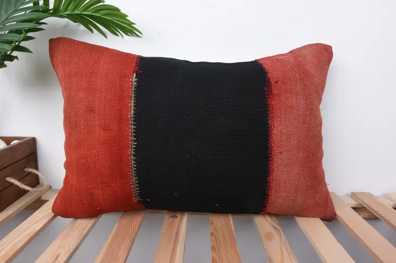 Red and Brown Embroidered Throw Pillow, Handmade Vintage Cushion