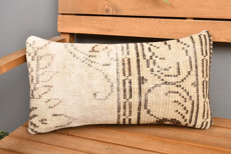 Handmade Beige & Brown Floral Throw Pillow, Vintage Rectangle Pillow