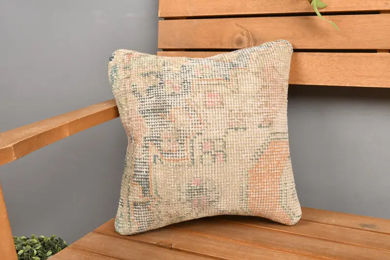 Beige & Orange Southwestern Throw Pillow, Vintage Embroidered Pillow