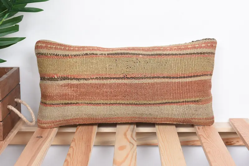 Brown & Red Striped Pillow, 8x16 Embroidered Throw Pillow