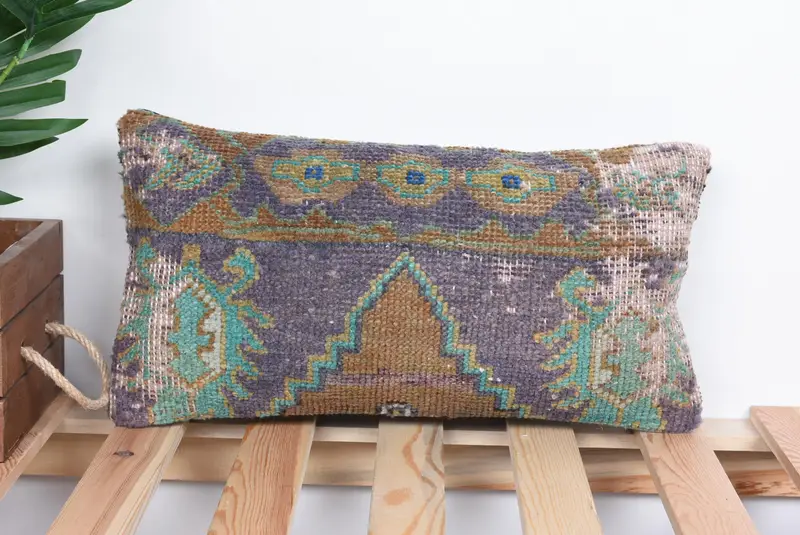 Purple & Brown Floral Embroidered Throw Pillow, Vintage Handmade Cushion