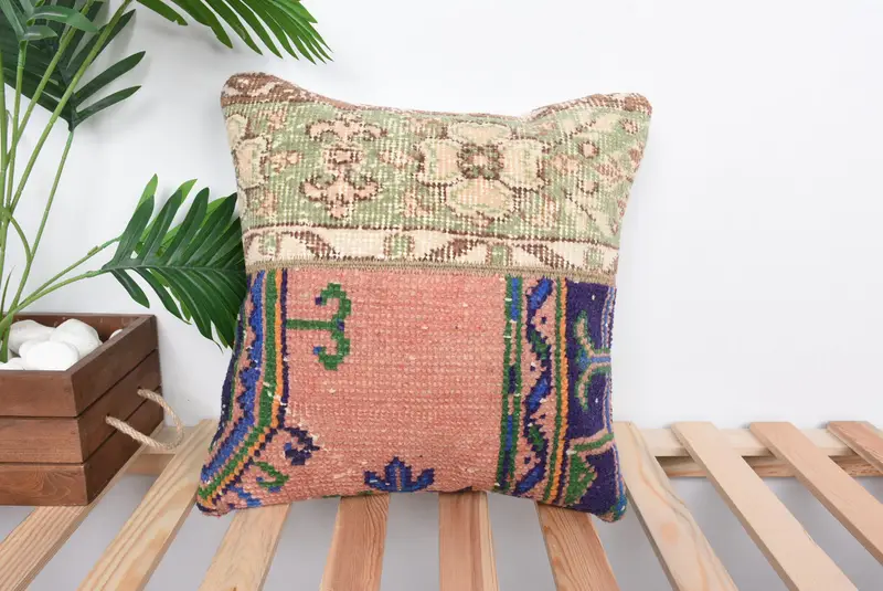 Red & Brown Patchwork Throw Pillow, 16x16 Embroidered Cushion