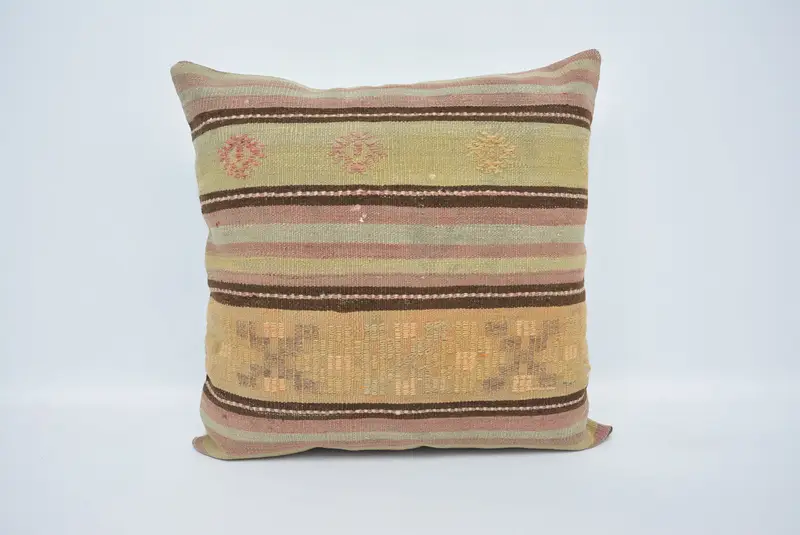 Orange & Green 28x28 Embroidered Throw Pillow, Handmade Vintage Decor