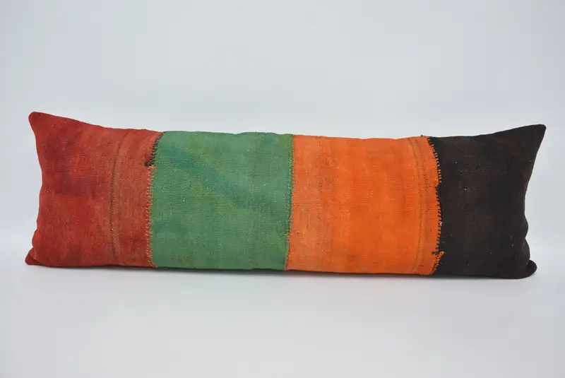 Orange & Green Striped Throw Pillow, Versatile 16x48 Cushion