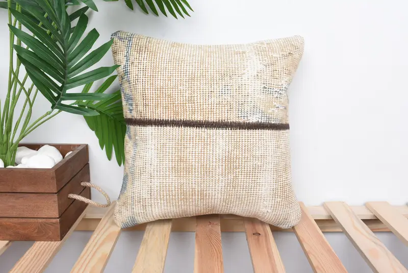 Beige Patchwork Throw Pillow, 14x14 Embroidered Cushion