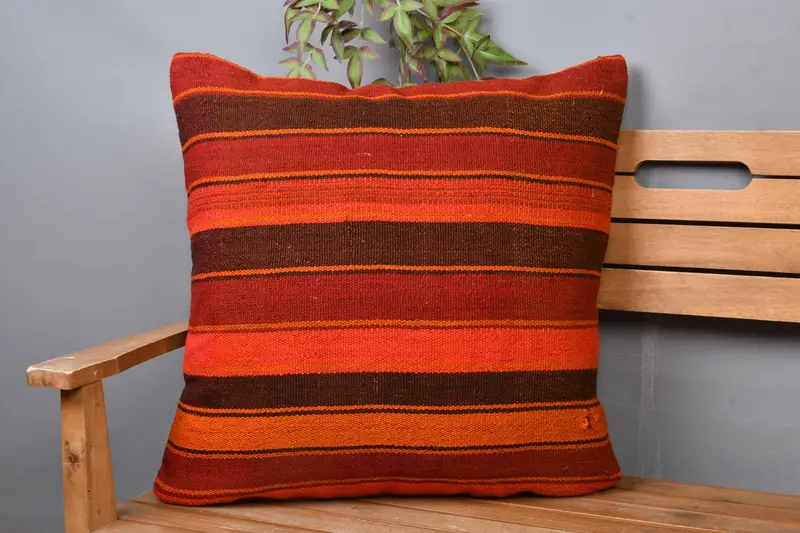 Red & Brown Striped Throw Pillow, 24x24 Embroidered Cushion