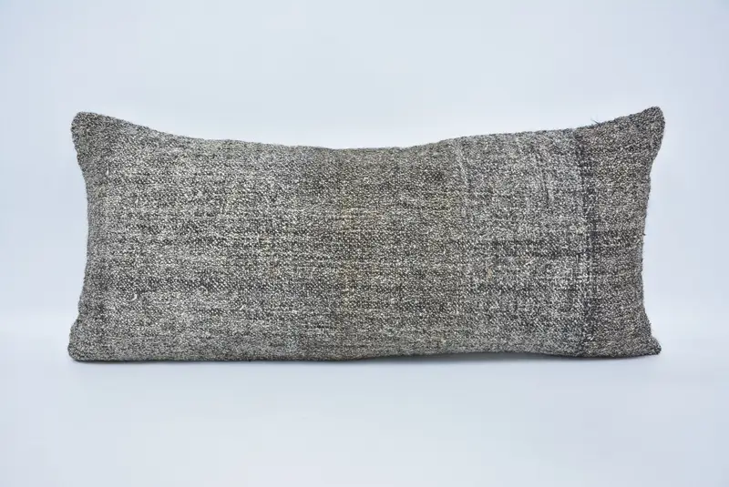Brown & White Plaid Throw Pillow, 16x36 Vintage Cushion