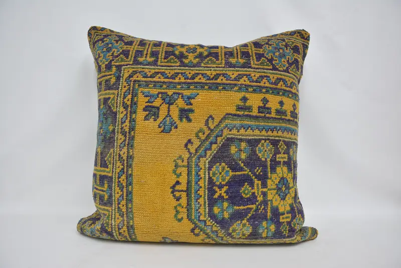 Orange & Bronze Embroidered Throw Pillow, 32x32 Vintage Cushion