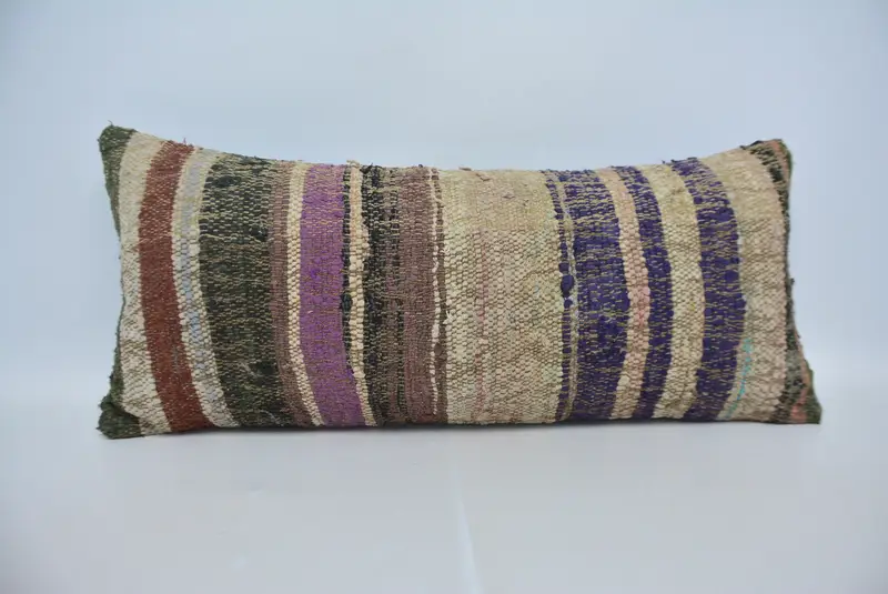 Beige & Purple Striped Throw Pillow, Vintage Embroidered Pillow