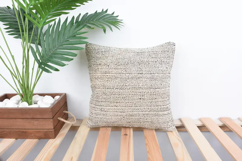 Embroidered Southwestern Throw Pillow, Vintage Beige & Brown Cushion
