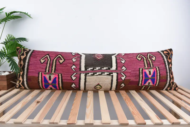 Red, Bronze Embroidered Throw Pillow, 16x56 Rectangle Cushion