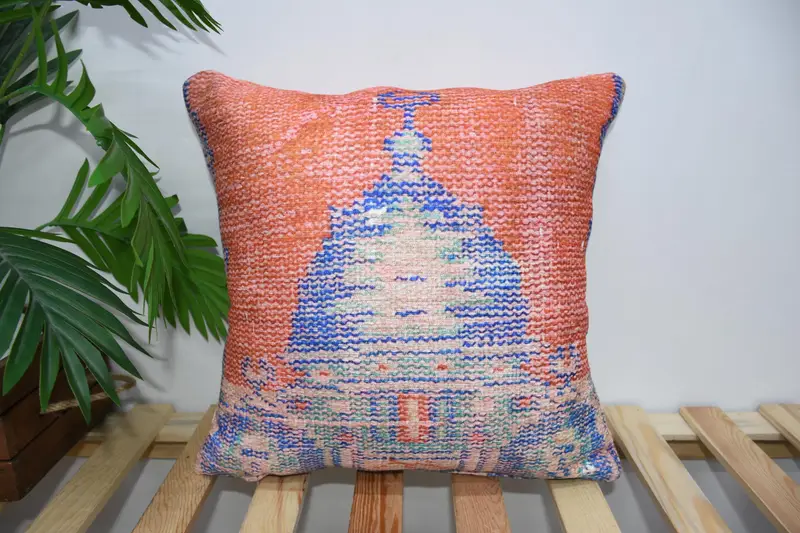 Red & Green Striped Throw Pillow, Embroidered Vintage Cushion