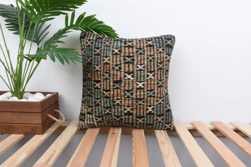 Orange & Gray Embroidered Throw Pillow, 16x16 Geometric Cushion