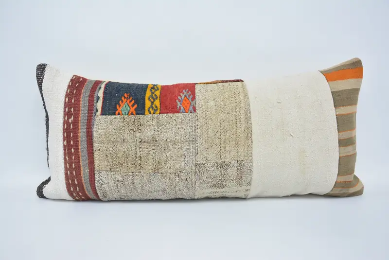 Handmade Striped Throw Pillow, Vintage Embroidered Cushion