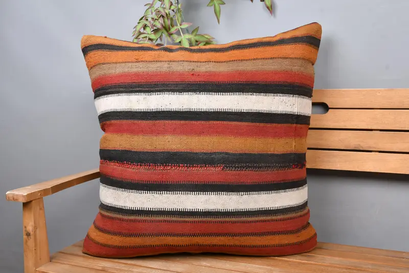 Brown & Red Striped Pillow, 28x28 Embroidered Throw Pillow
