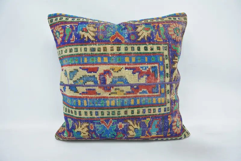 Handmade Blue & Beige Polka Dot Throw Pillow, Vintage Embroidered Pillow
