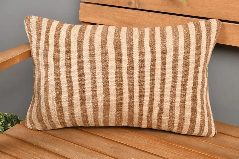 Beige & Brown Striped Pillow, 12x20 Handmade Throw Pillow