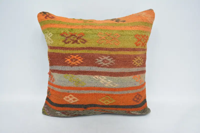 Red & Green Embroidered Throw Pillow, 24x24 Vintage Pillow