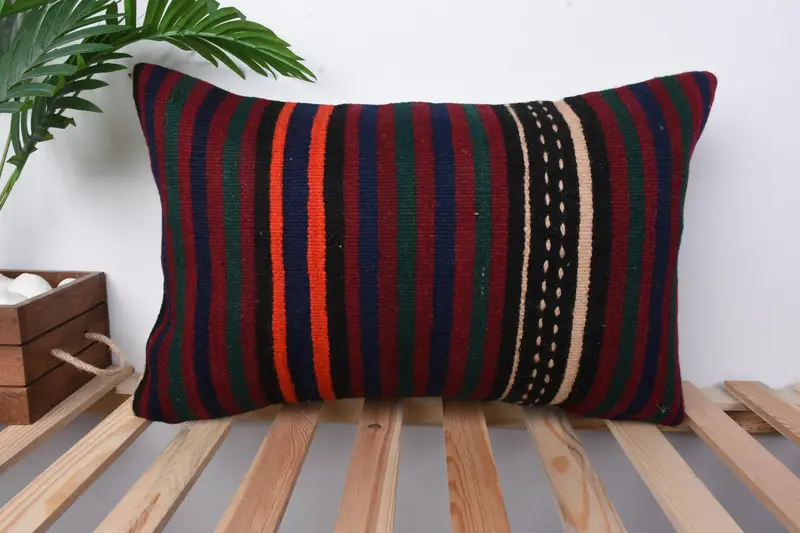 Red & Bronze Striped Throw Pillow, 16x24 Embroidered Cushion