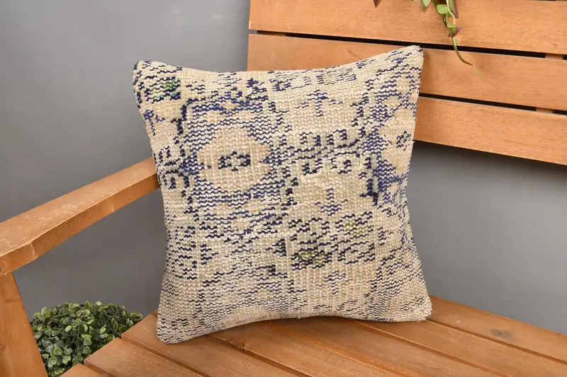 Beige & Bronze Embroidered Throw Pillow, Versatile 14x14 Linen Pillow
