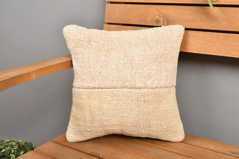 Beige Embroidered Patchwork Throw Pillow, 12x12 Vintage Square Pillow