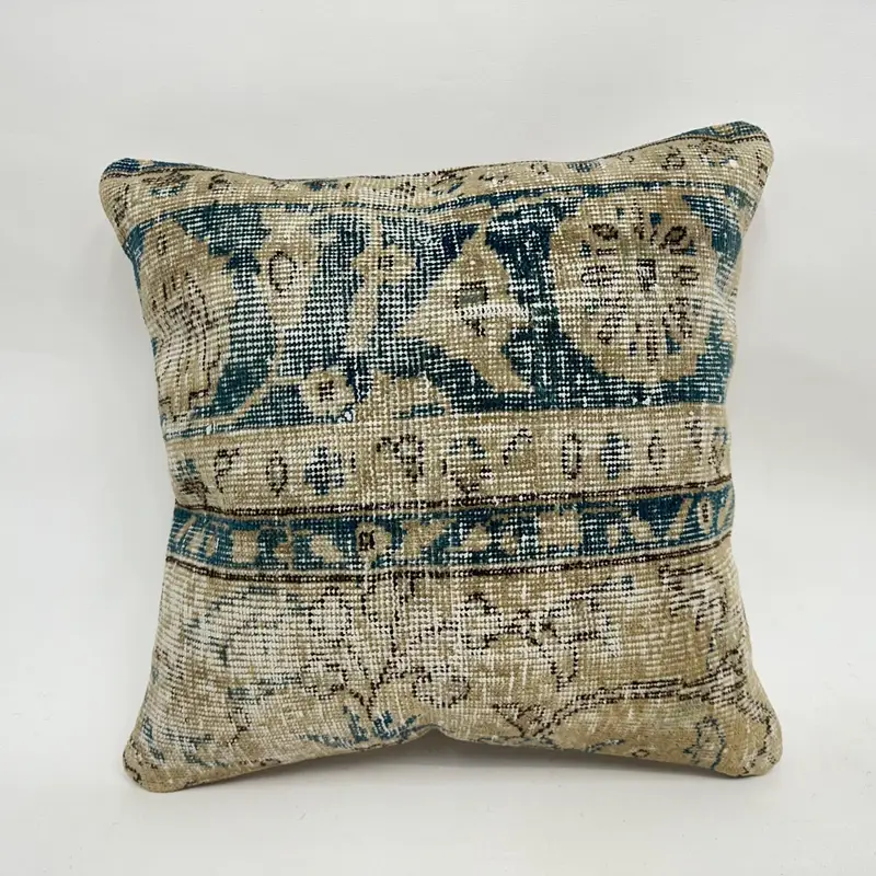 Green & Brown Floral Embroidered Pillow, 20x20 Vintage Throw Pillow