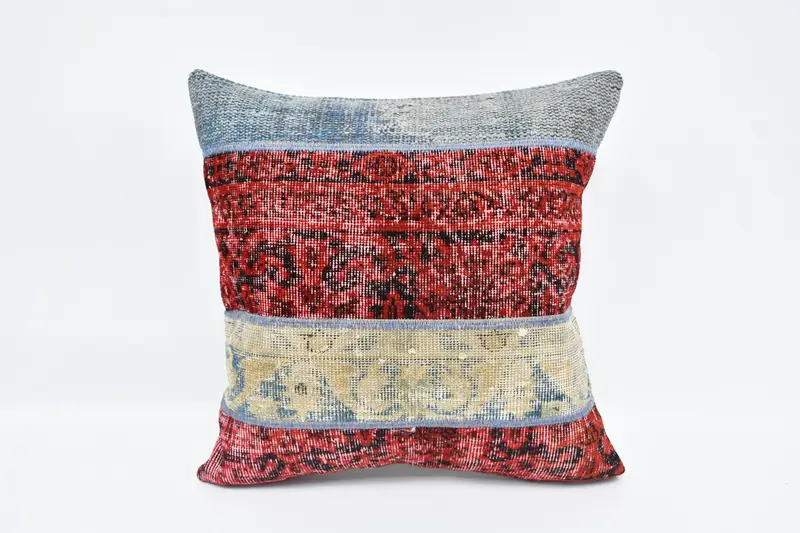 Red & Bronze Embroidered Throw Pillow, 24x24 Vintage Plaid Pillow