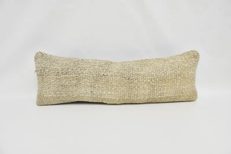 Handcrafted Hemp & Wool 12x36 Throw Pillow, Embroidered Vintage Cushion