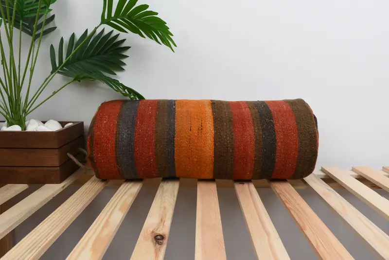 Red & Brown Embroidered Wool Pillow, Bohemian Throw Pillow