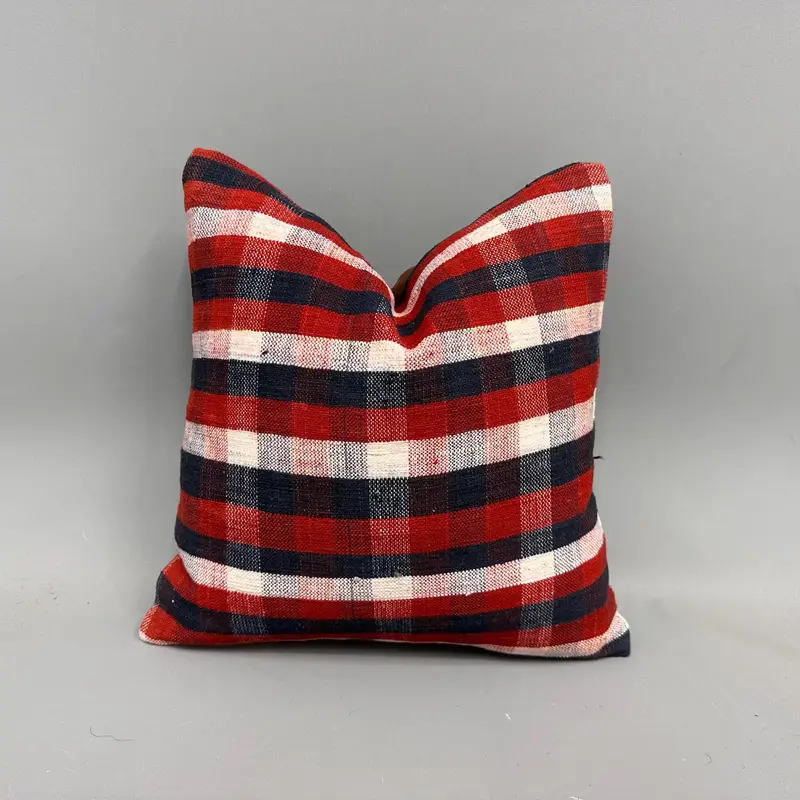 Blue & Red Striped Throw Pillow, Vintage Kilim Cushion