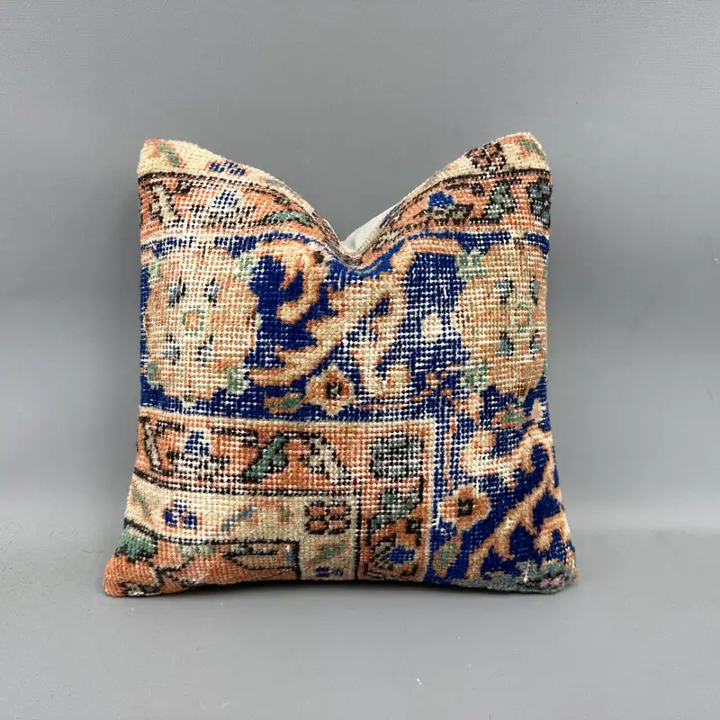 Handwoven Turkish Kilim Throw Pillow, 14x14 Inch Vintage Cushion