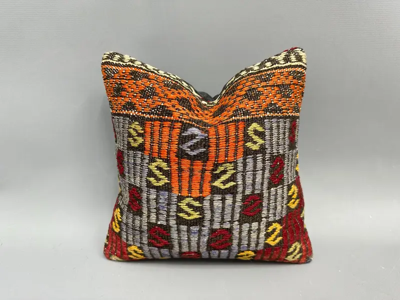 Handwoven Turkish Kilim Throw Pillow, Vintage Kilim Pillow