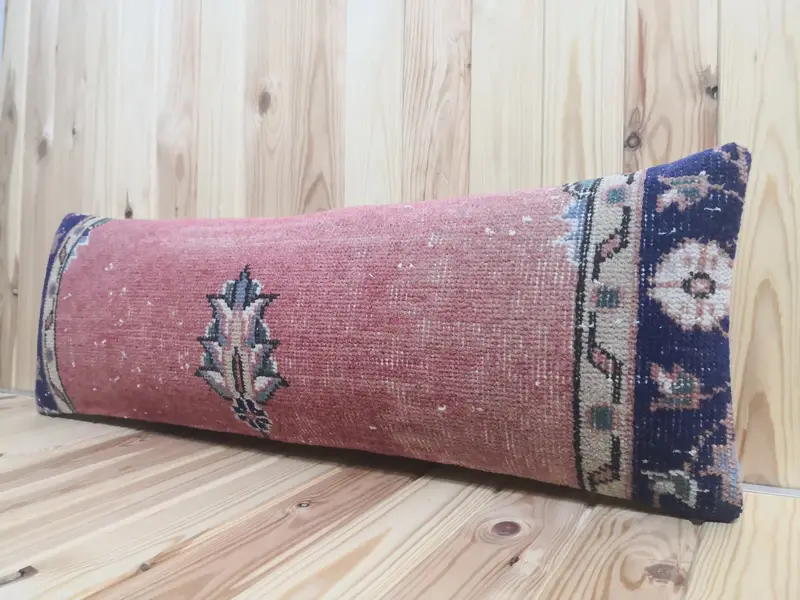 Handmade Wool Throw Pillow, 12x36 Inch Geometric Red & Bronze Pillow