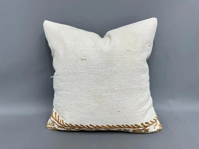 Beige & Bronze Striped Throw Pillow, Vintage Embroidered Cushion