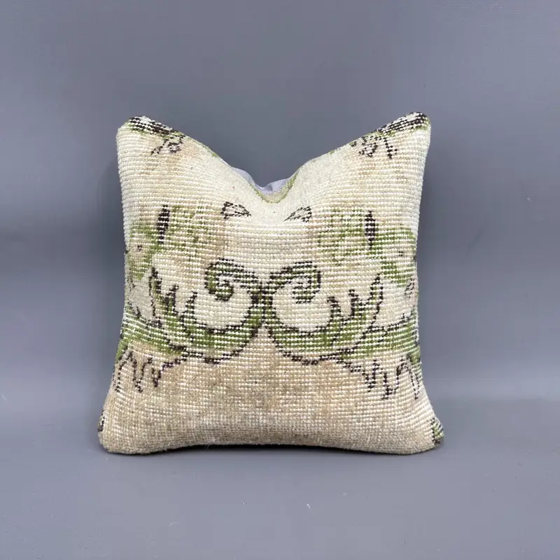 Beige Southwestern Kilim Throw Pillow, Vintage Embroidered Cushion